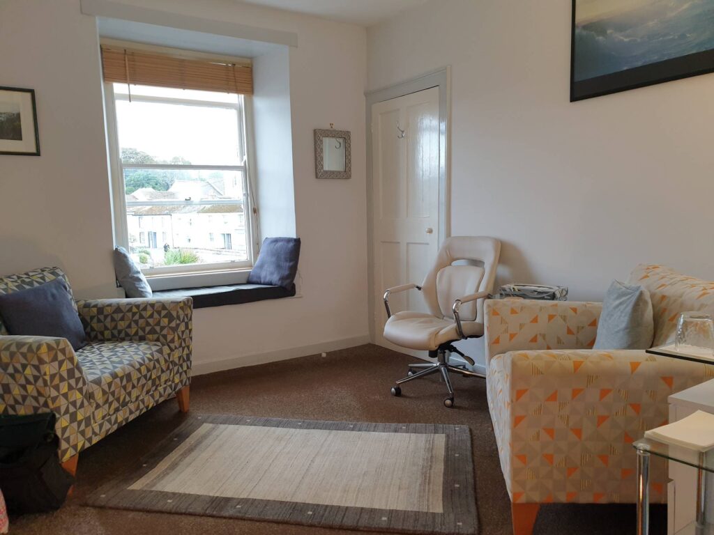 My consulting room in 26 Lemon Street is just across the road from the Truro Plaza cinema. The well-ventilated room is on the 1st floor and provides a quiet, discreet and comfortable area. It is an ideal setting, except if you are unable to climb stairs in which case alternative arrangements can be made. Counselling and psychotherapy clients come from all walks of life, with much variation in terms of ages, backgrounds, and reasons for making a consultation.